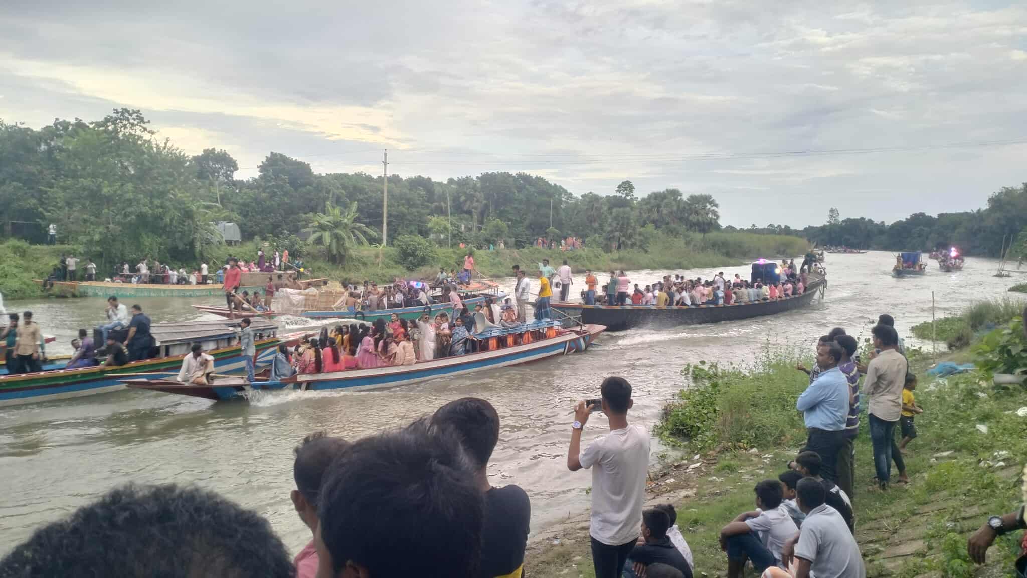 তাহেরপুরে শান্তিপূর্ণ ভাবে মা দূর্গার প্রতিমা বিসর্জন